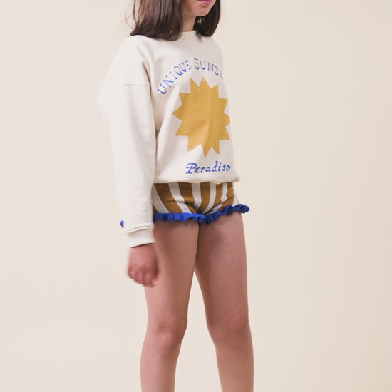 Sweatshirt with round neck and long sleeves. Ribbed trim. Front print.