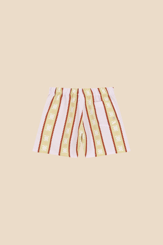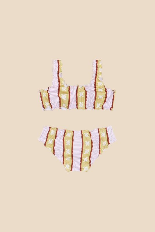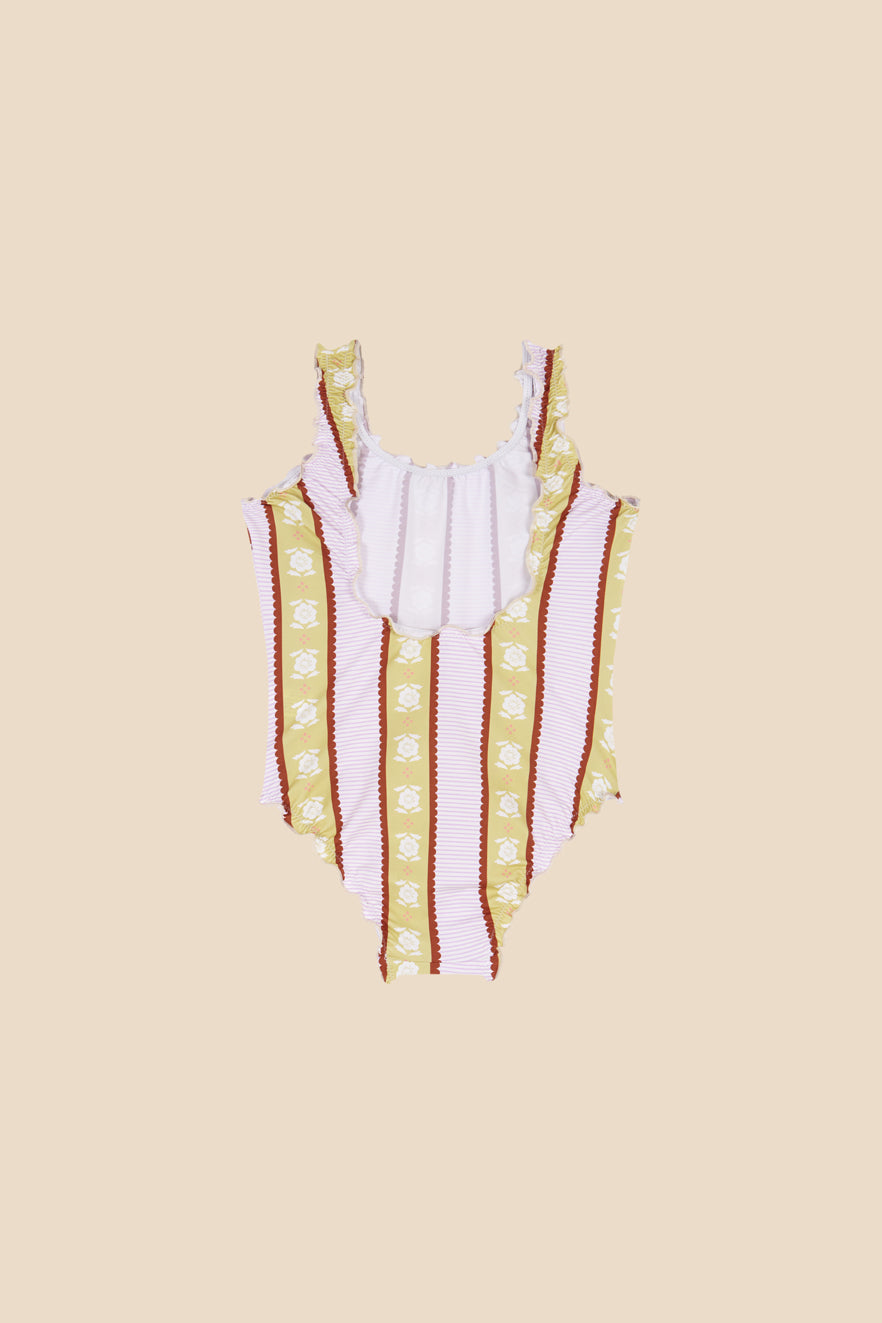 Bañador con estampado a rayas verticales con goma elástica y detalle fruncés
