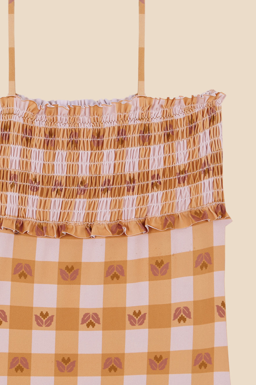Bañador con tirante ajustable y nido de abeja